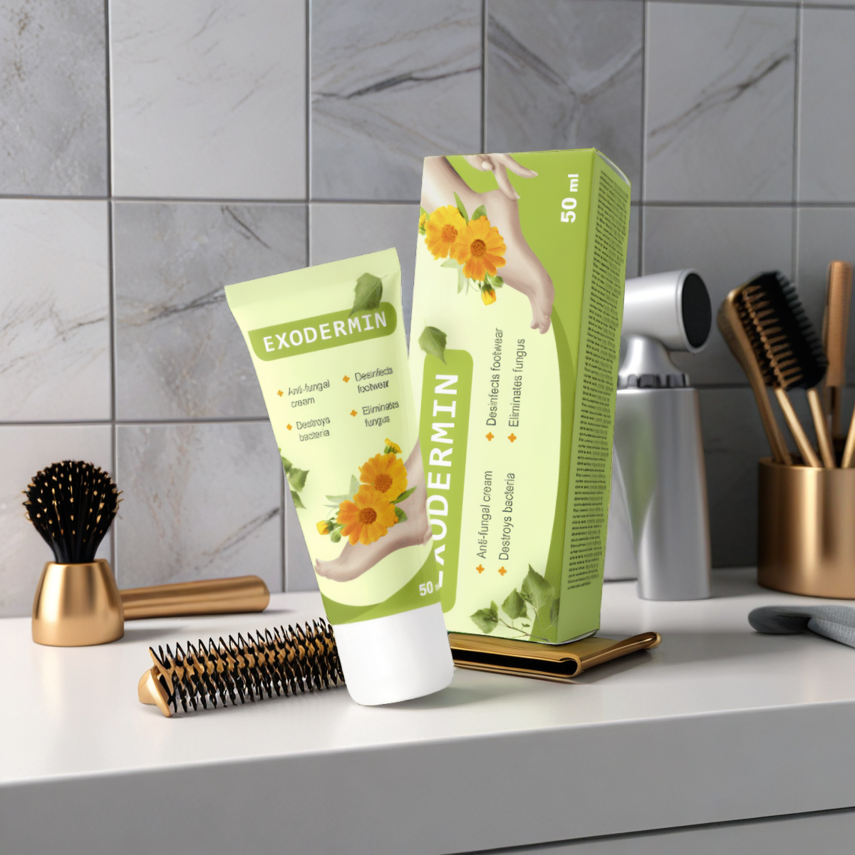 Exodermin, dezvoltat de brandul Exodermin, este o cremă pentru piele formulată meticulos cu o combinație unică de ingrediente naturale selectate cu grijă pentru a combate o serie de probleme ale pielii. Compoziția cremei include o varietate de extracte naturale și uleiuri precum castoreum, extract de mumijo, extract de scoarță de mesteacăn, extract de aloe vera, ulei de Monarda, extract de gălbenele, proproli și calanoe. Conceput special pentru problemele pielii picioarelor precum mâncărimea, roșeața, pielea crăpată între degetele de la picioare, bășicile și uscăciunea, Exodermin își propune să atenueze eficient aceste simptome comune.